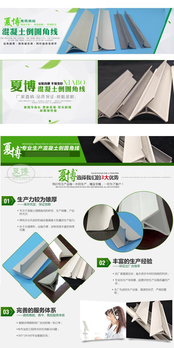 夏博公司生產(chǎn)的倒角線有多種規(guī)格,圓弧的角度尺寸也分好多種,現(xiàn)在正值施工潮,各種規(guī)格目前現(xiàn)貨充足的。